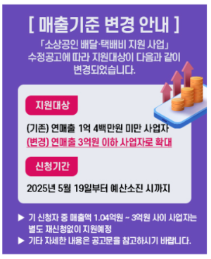 - 연 매출 3억 원 이하 (2025.04.21 수정사항 : 연매출 1억 4백만원 미만 -> 3억이하)